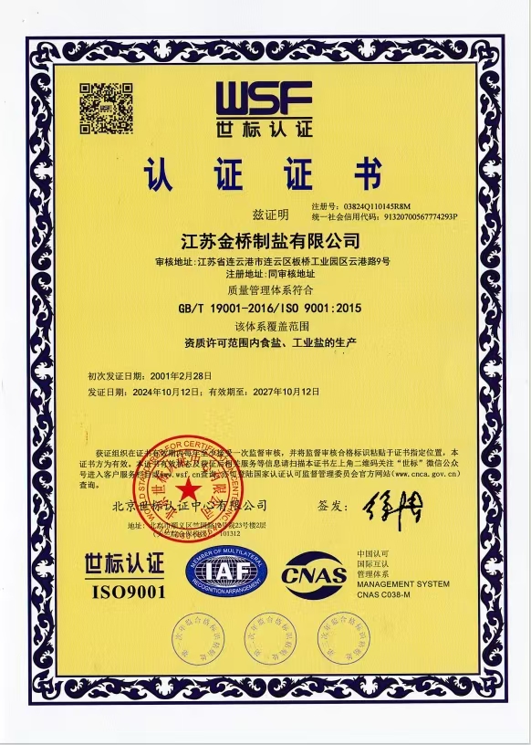 • 江蘇金橋制鹽公司通過管理體系審核認證